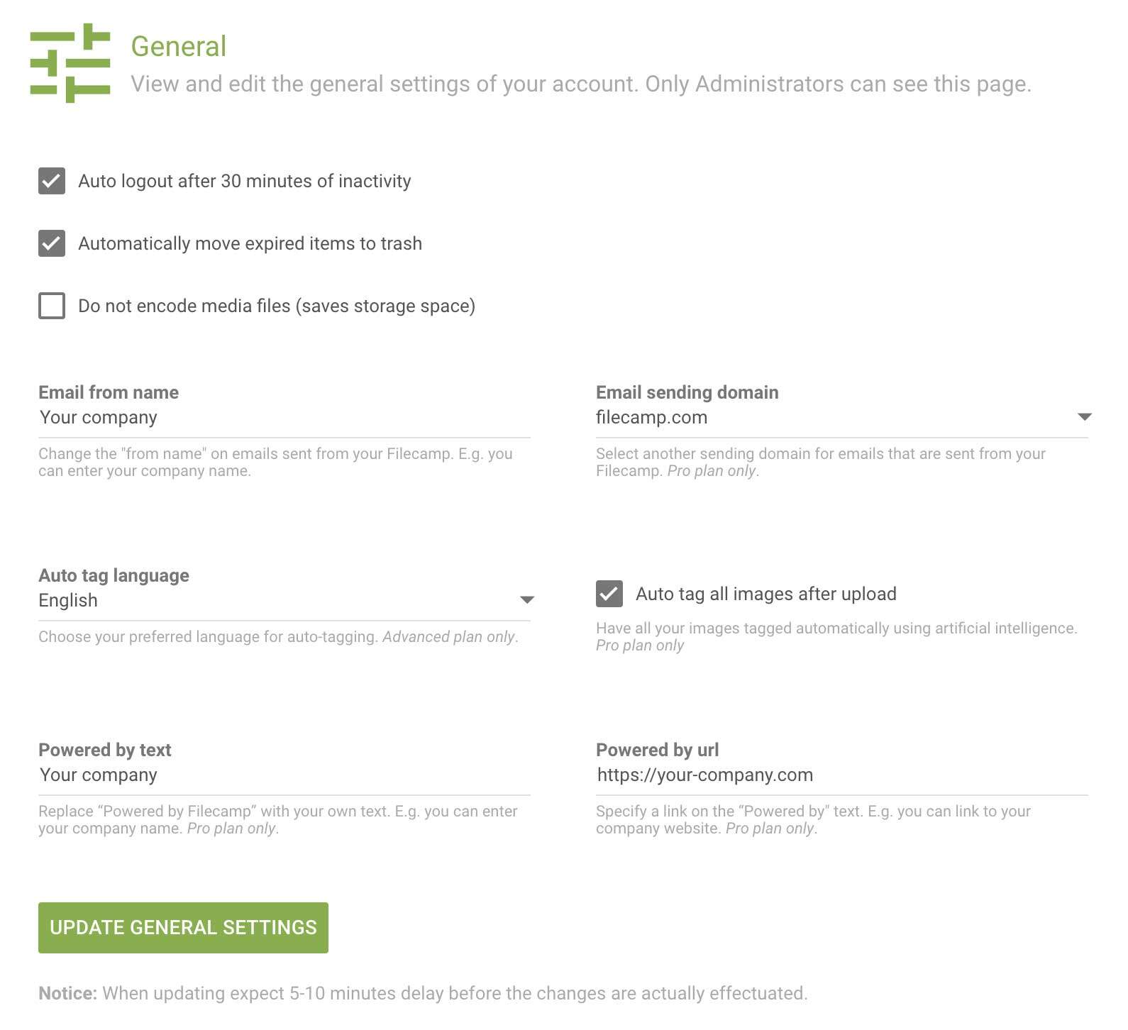 Looking to define or tweak your Filecamp's general settings? You've found the right place!